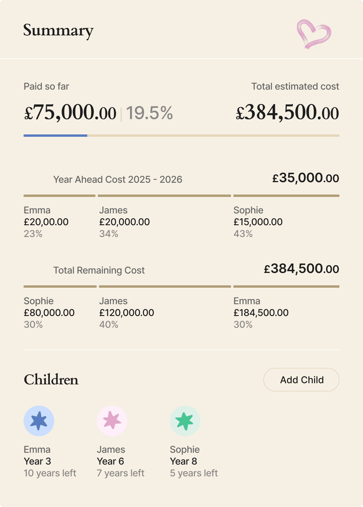 Sencillo is a free digital platform designed to help families understand, plan, and manage the cost of their children’s education – from early years through to university. We provide smart planning tools and information to help families look at their finances in alignment with education costs, and explore your options. Where appropriate, we also introduce families to regulated financial products, such as Loans or Savings products, offered by third-party providers, via our Marketplace.